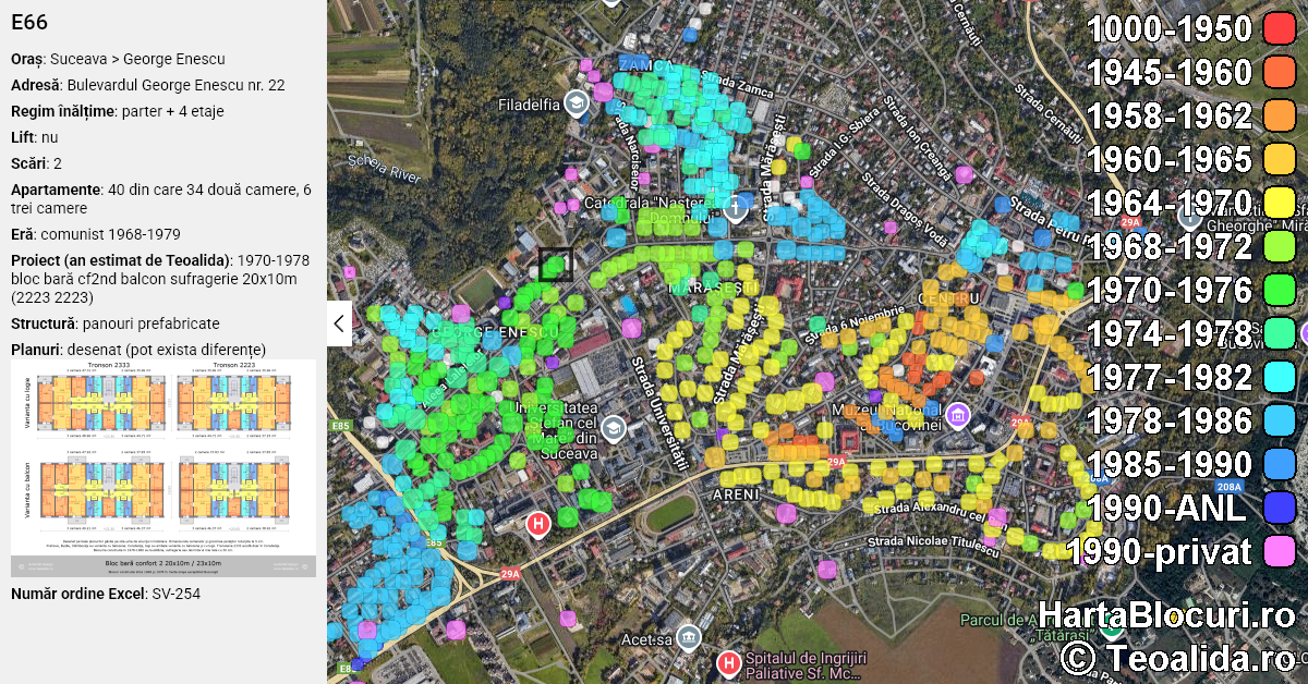 Detalii tehnice la 3100+ blocuri comuniste (4200+ scări și 98000+ apartamente), 30+ imobile interbelice, 100+ ansambluri noi.