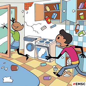 NU încercați să ieșiti afară folosind liftul sau scările (acestea se prăbușesc primele), sau sărind pe geam (poate cădea tencuială și geamuri sparte). Nu merită riscul decât dacă vă aflați la parter și ajungeți afară maxim 10 secunde.